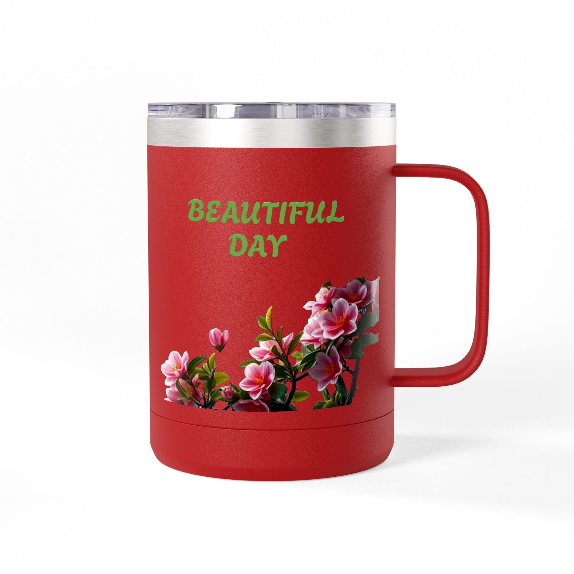 Meet the perfect gift for any coffee enthusiast – the coffee mug tumbler. Made with high-grade stainless steel, this highly durable tumbler is shaped like a mug with a convenient C handle. What's more, its double wall insulation can carry 15oz of your favorite coffee in the perfect temperature whether it's toasty or a refreshing cold brew. All tumblers come with a stylish powder coating and a lid included.