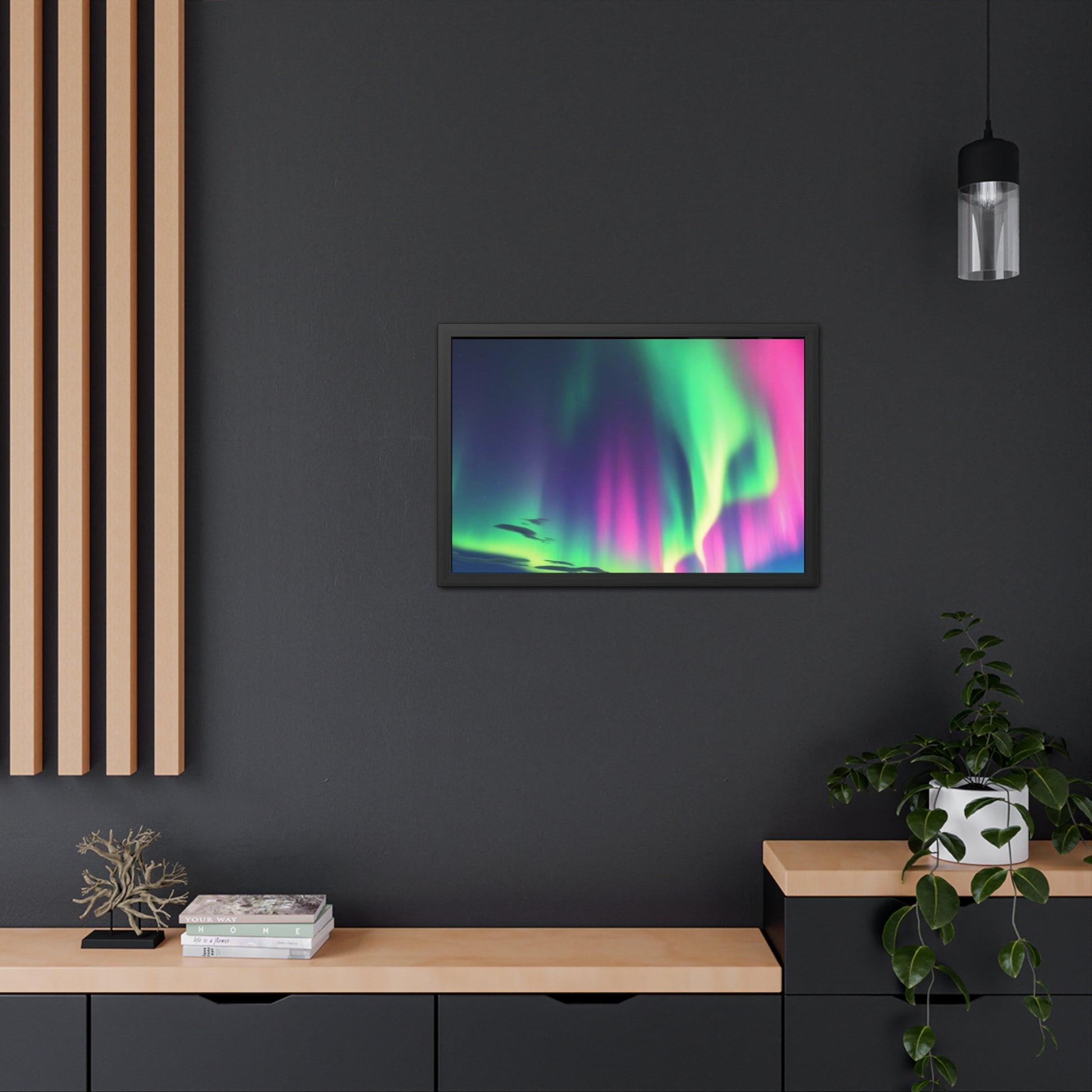 Transform your space with a stunning framed poster that captures the mesmerizing beauty of the aurora borealis. This wall art serves as a vibrant focal point, bringing an enchanting atmosphere to any room. Perfect for those who appreciate nature's wonders, this framed poster suits both cozy homes and modern offices, enhancing any decor style with its colorful flair. Ideal for gift-giving on occasions like birthdays, housewarming parties, or holidays, it resonates with art lovers, nature enthusiasts, and anyone looking to add a splash of color to their walls.